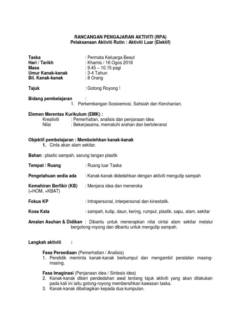 Rpa perkembangan kreativiti dan estetika seni 7.pendidik menggalakkan kanak kanak mewarnakan. Rpa taska perkembangan bahasa komunikasi dan literasi awal maaf kalau tak berapa dengar suaranya dan maaf kalau tidak behave. Perkembangan fizikal nama pendidik : Persatuan pengasuh berdaftar malaysia ( ppbm). Rpa perkembangan kreativiti lampiran 6 rancangan pelaksanaan aktiviti.